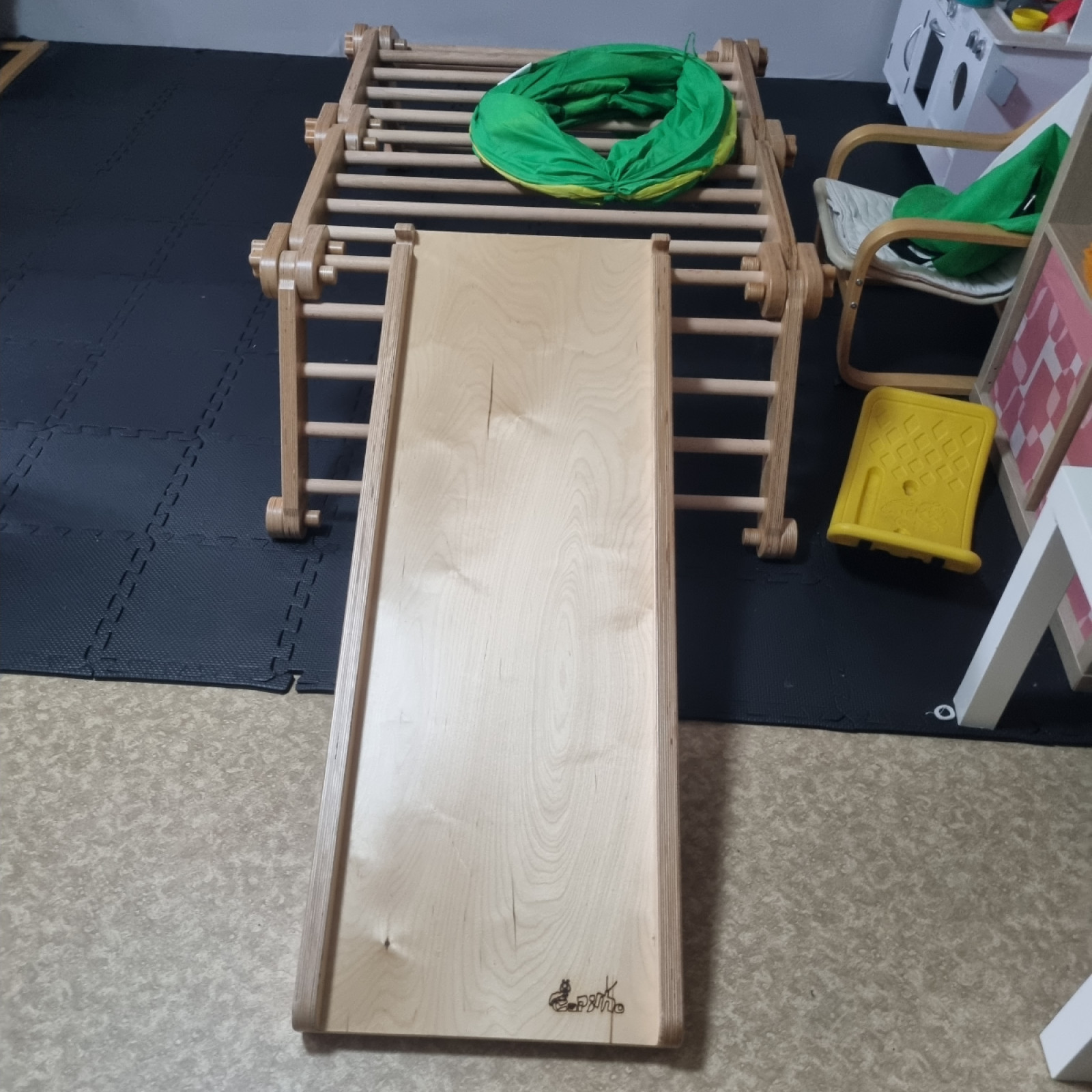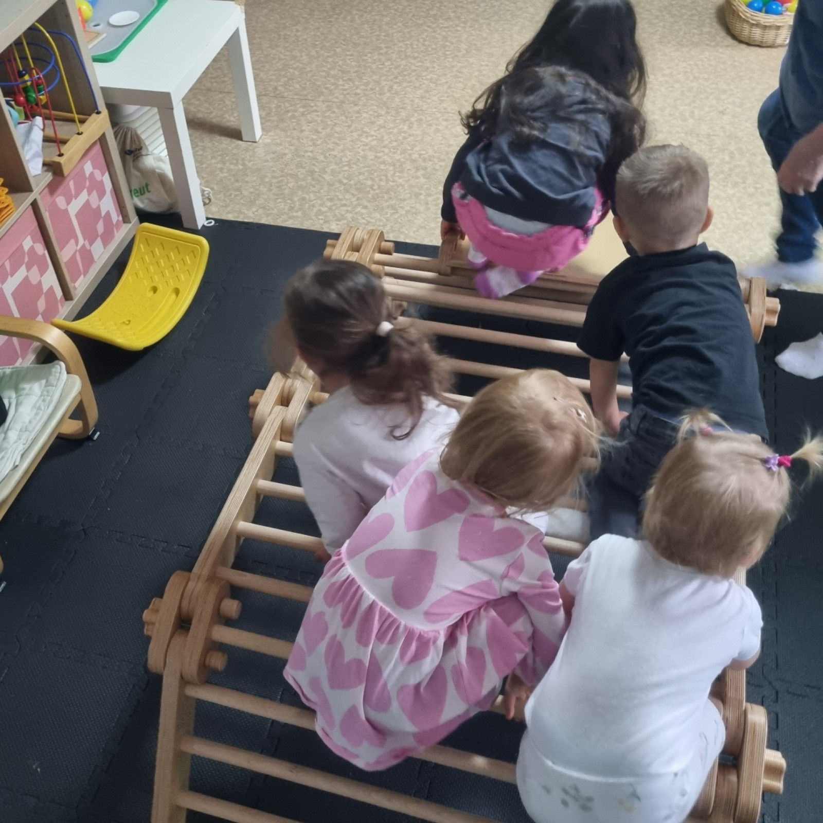 Nach dem Motto „Bewegung ist das A und O“ bieten wir viele Möglichkeiten für körperliche Aktivitäten. Mit unseren Pikler-Elementen können die Kinder klettern, rutschen und balancieren – ganz ohne Angst, denn hier wird Sicherheit großgeschrieben!